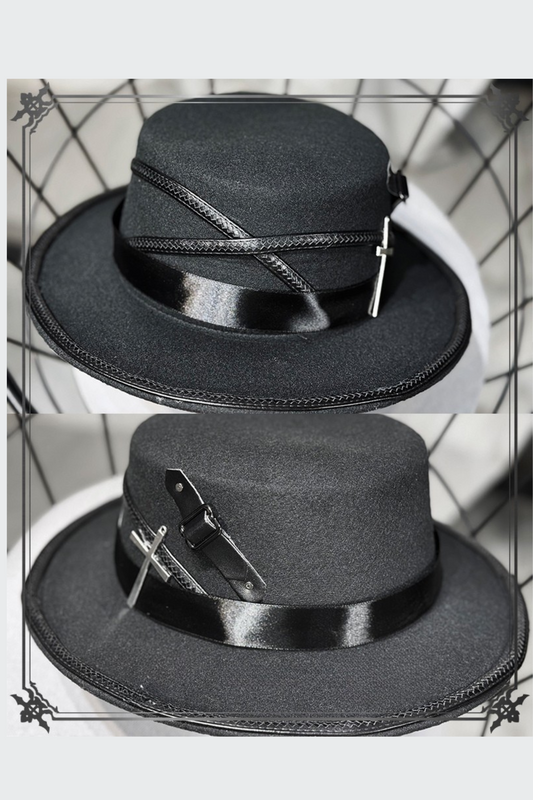 Rhinestone Black Cross Mini Lolita Crown Hat Decorated Hime Design bow Beaded