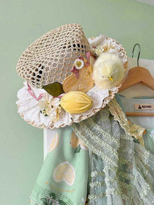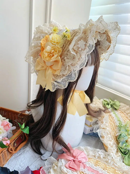 Design Flat Cottagecore Hat Straw Lolita Floral Color 7 Options