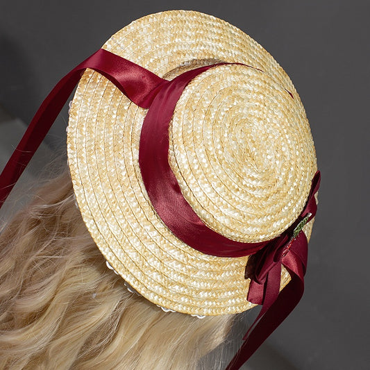 Hat Red Strawberry Bowknot Cottagecore Lolita Straw Country