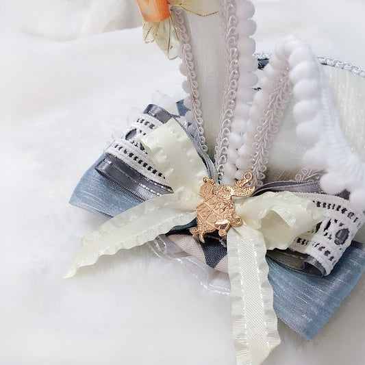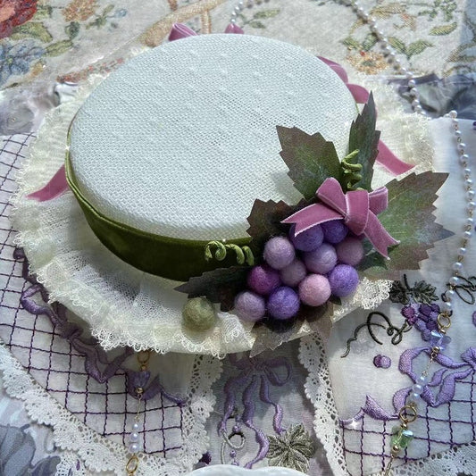 Trim Grapes Brown/White Mini Bowknot Decorated Lace Hat Details