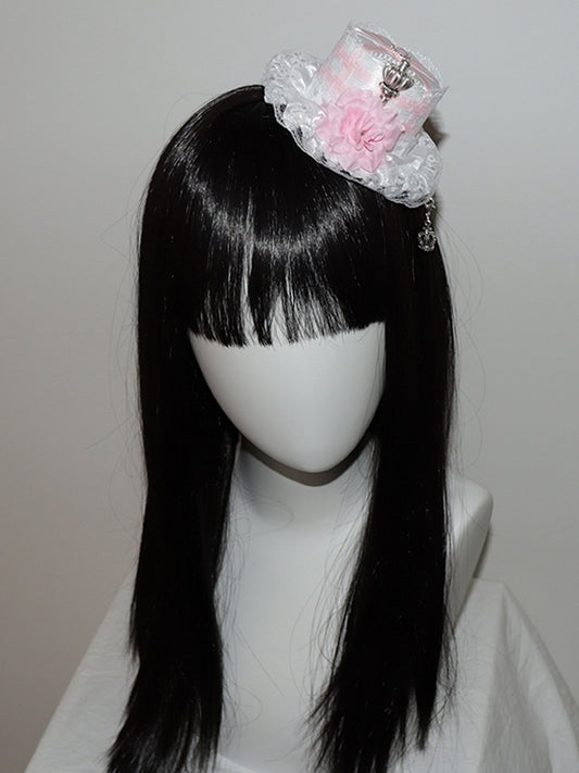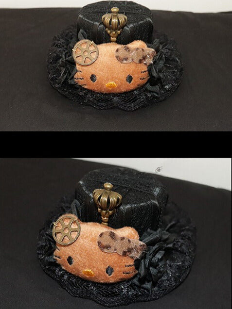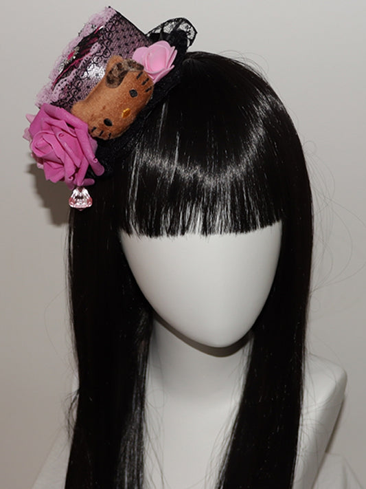 Mini Trim Hat Floral Plushie Lace BlackPink Kitty Design