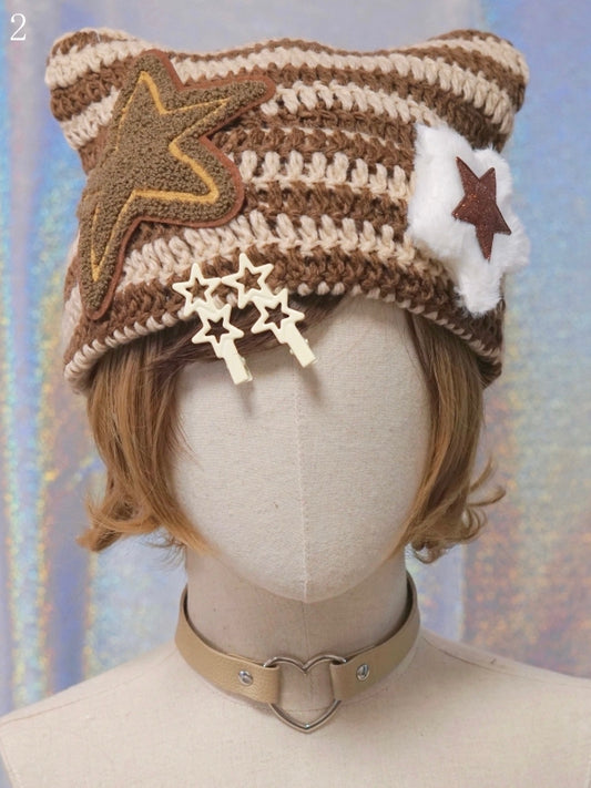 3 Hat Options Ear Decorated Cat Star/Bowknot