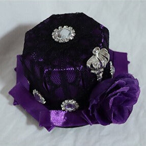 Lace Floral Mini Design Hat Crown Purple Trim Decorated