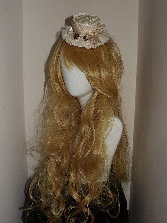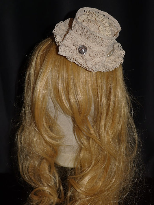 Mini Hat Design Bowknot Beaded Decorated Beige