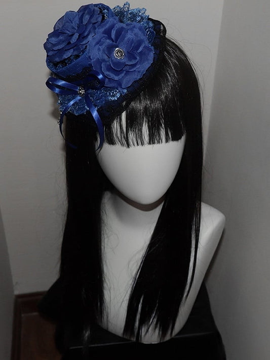 Blue/Red Hat Decorated And Rhinestone Crown Lace Mini Design Floral