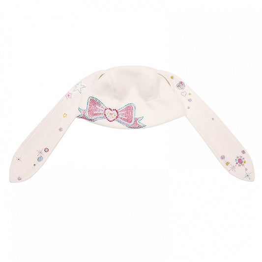 Y2K White Hat Design Rhinestone Bow Bunny Ear