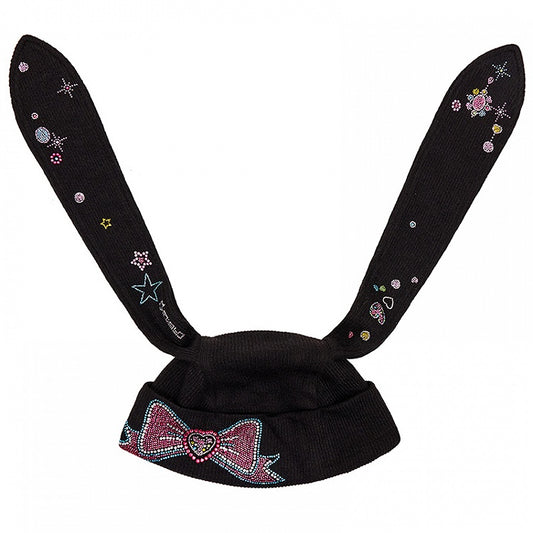 Black Hat Bunny Ear Y2K Design Rhinestone Bow