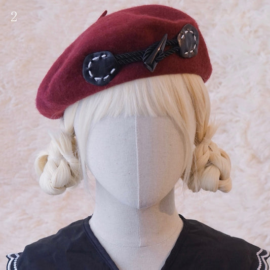 Options Applique Hat Beret Button/Star/Dog Y2K 17
