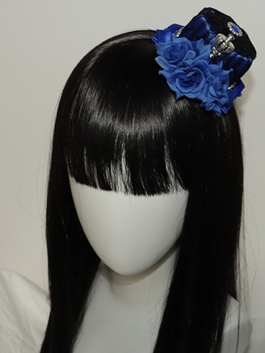 Blue/White Floral Crown Mini And Design Decorated Hat Rhinestone