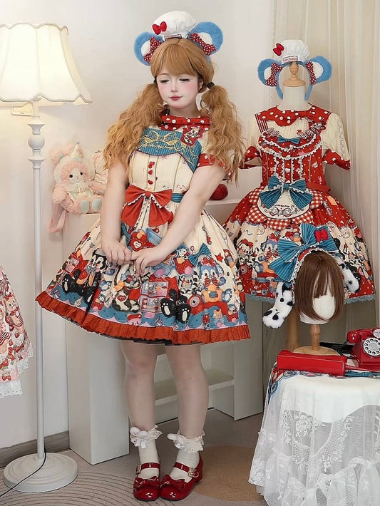 Blue And Red Circus Sweet Lolita Stars Big Bow Pompon Mini Hat