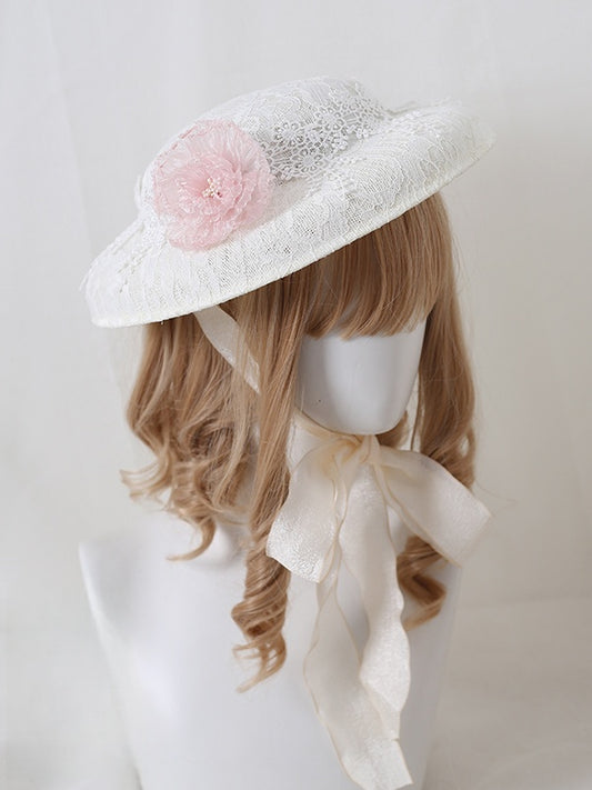 Vintage Hat Lolita Dusty With Pink / Flower Flat Decorations White