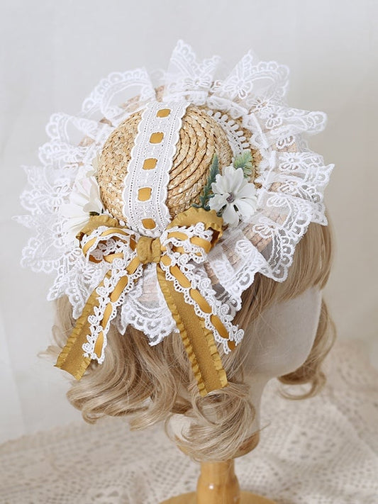 Lace Hat Yellow Lolita Creamy Osmanthus Sweet Mini Bowknot