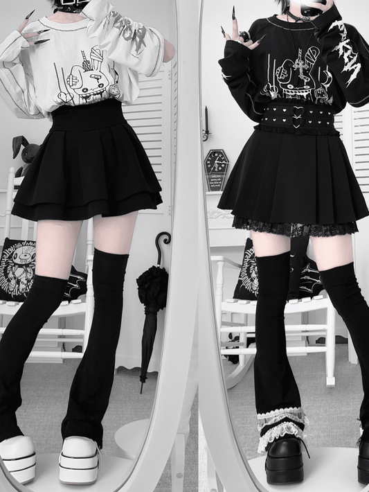 Rabbit with Zippers Top Print Sleeve Black/White Shattered Kei Convertible Jirai