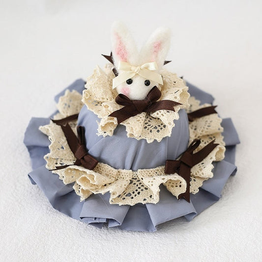 Decoration Hat Cute Green Lolita With Bunny Lace-trimmed Bowknot Dusty / Mini Brown Blue