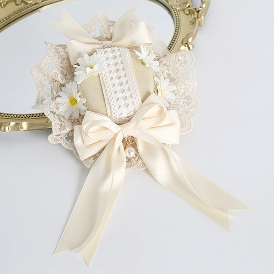 Hat Cottagecore Beige Bowknot Mini Lolita Daisy Lace