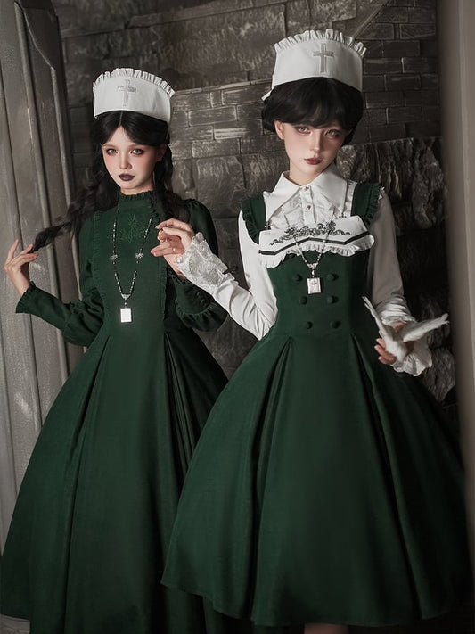 Top Elegant and Classic - Lolita + Set Long Version Juliette Skirt Bowtie White Sleeves Hat Black