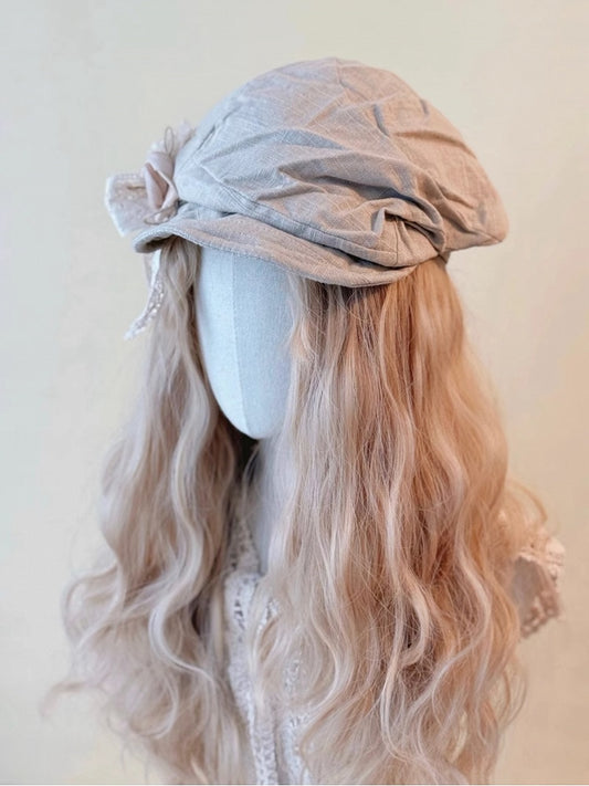 Fabric Bow and Newsboy Hat Decorated Wasteland Lace Flower