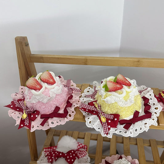 White/Pink/Red/Blue Lace Strawberry Decoration Lolita Cake Mini with Hat and