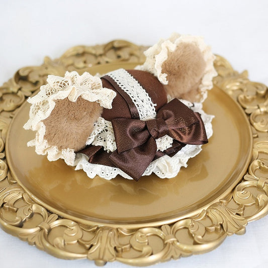 Hat Sweet Coffee-Colored Plaid Lace Lovely Bowknot With Lolita Mini