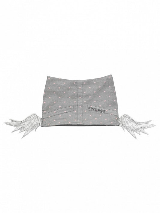 Gray Elf Wings Angel Hat Pink with Heart Prints