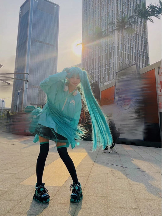 Full Set: Ears Snow + Tie Oversized Blue Hoodie + Socks + Skirt + Bunny Shirt