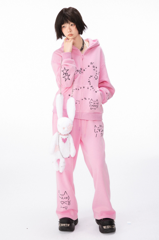 Leg Boa Hooded + Computer Hoodie Sweatpants Straight