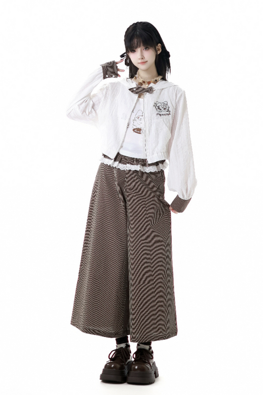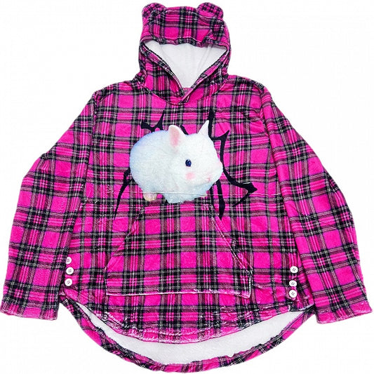 Pattern Hoodie Plaid Oversized Rose Fashion Bunny Red Print Gyaru