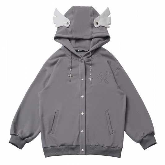 Bittersweet Chain Gray/Black Hood Design Hoodie Wing Cross Wing Embroidery Back Spring