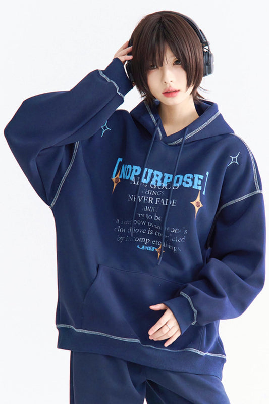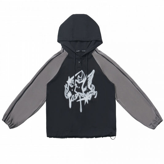 Hoodie Print Gray Colorblock Design and Star Loose Black