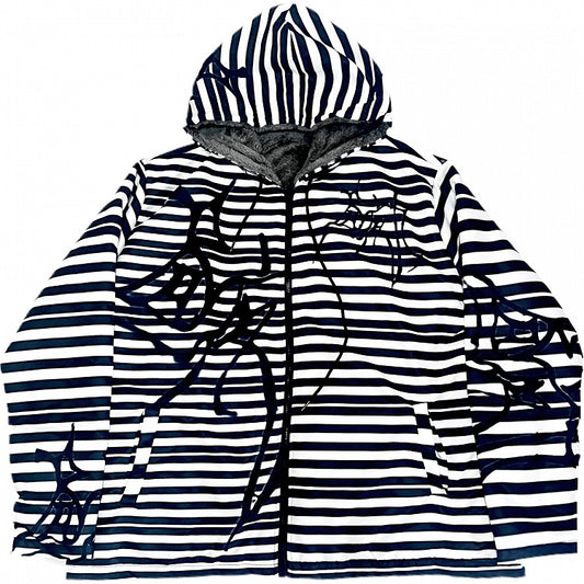 Hoodie Oversized Gyaru BlackWhite Pattern Fashion Zip Striped Closure