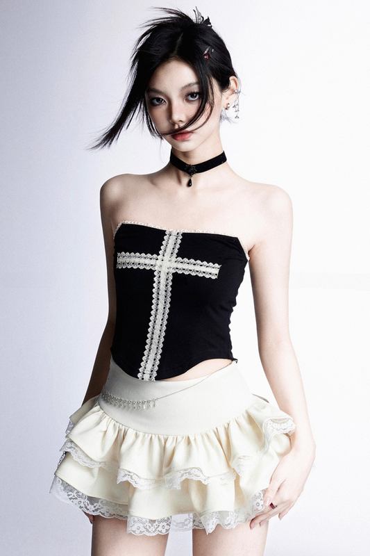 + Cross Cake Ruffle Hoodie Skirt Slim Hooded Top Tube