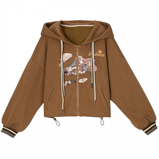 Fashion Long/Short Print Hoodie Brown Millard Vintage Version Prince
