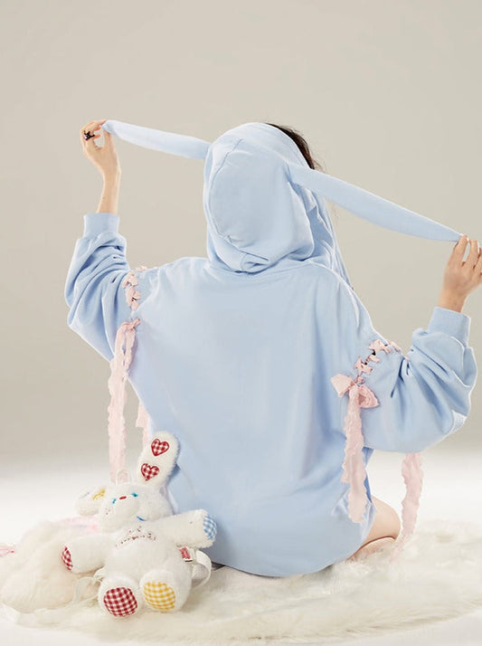 Hoodie Milk Blue Loose Bunny Hooded