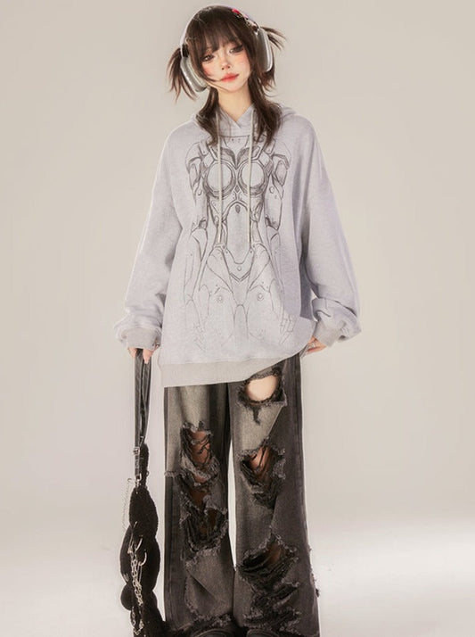 Hoodie Lace Print Design Comic Sweatshirt