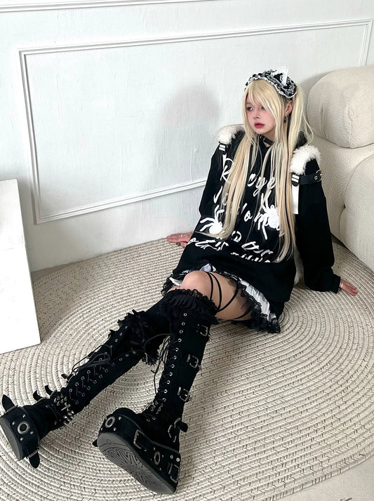 Hoodie Hooded Spider Dark Letter Print Student Letter