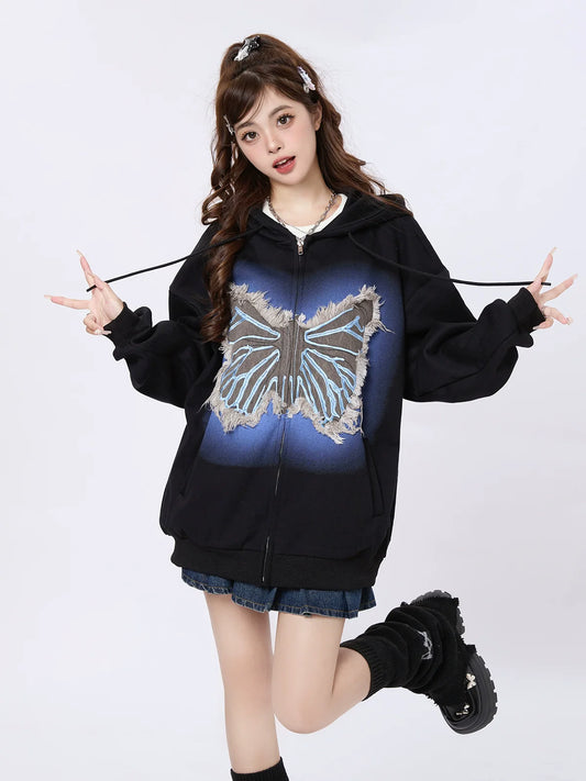 Sweatshirt Zip Butterfly Street Loose Hoodie American Jacket
