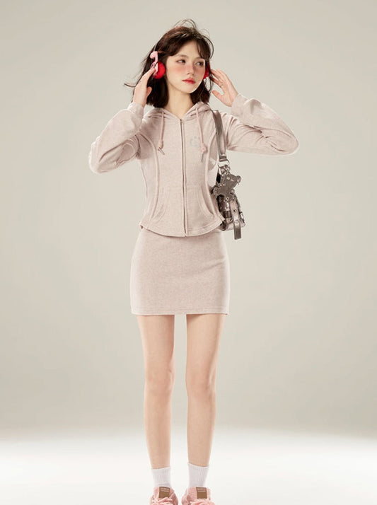 Purple Sporty Light Skirt Zip-up Hoodie