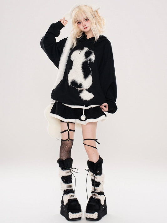 Black Cute Puppy Applique Puppy Ears Hoodie