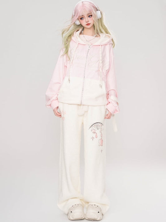 Apricot Rabbit Bear Ears Loose Zip Hoodie