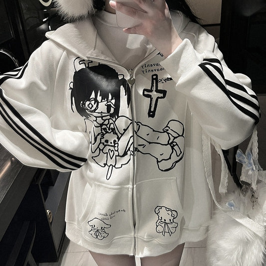 Jirai Kei White/Black Yami Kawaii Angel Girl Zip Hoodie