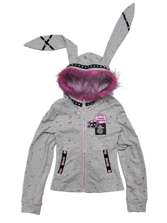 Punk Grey Oversized Bunny Ears Zip Hoodie