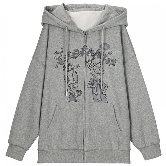 Zootopia Judy and Nick Print Grey Zip Hoodie