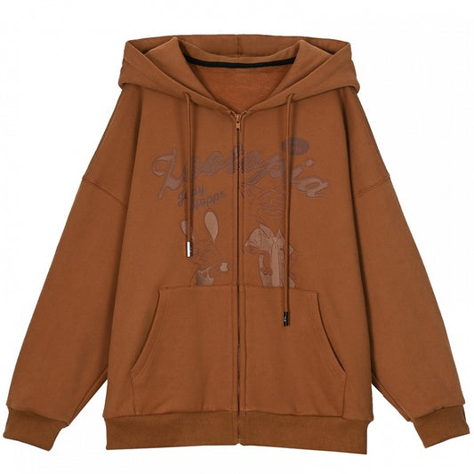 Zootopia Judy and Nick Print Brown Zip Hoodie