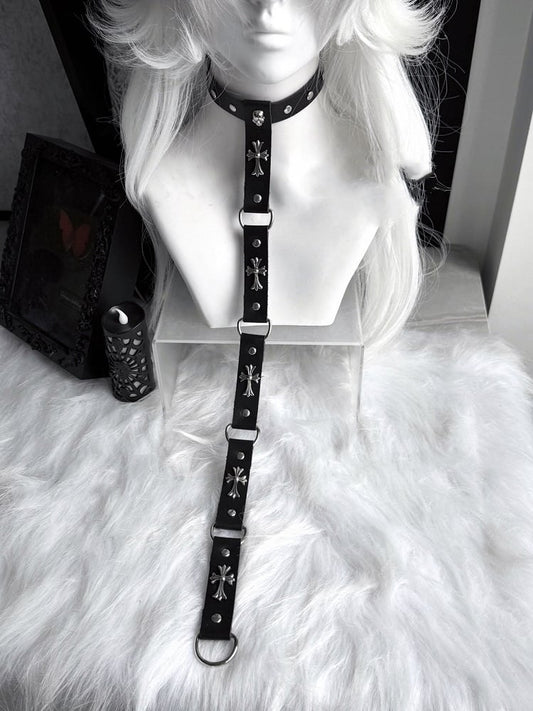Chain Choker Punk Black/Red PU Cross Embellished Stud and