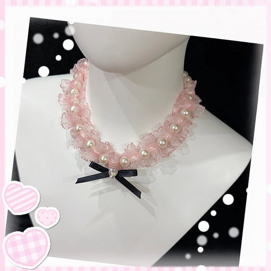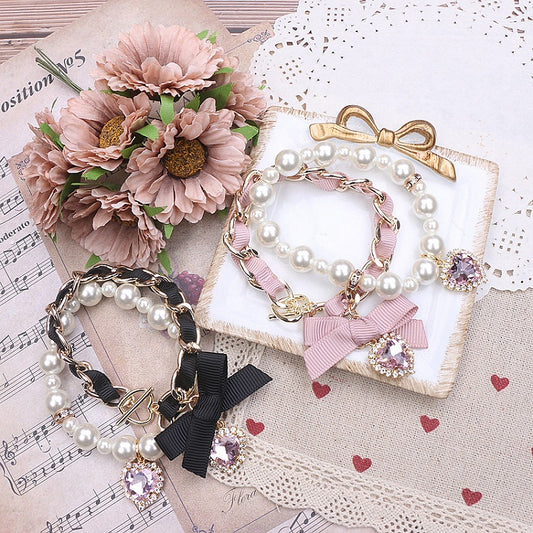 Necklaces - Pink Styles Rhinestone / Bow Pearl Lace with Two Accents Black
