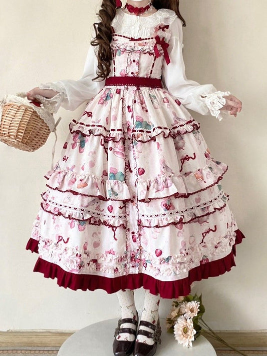 Dress Strawberry Print and Summer Lolita Kitty Spring Cottagecore