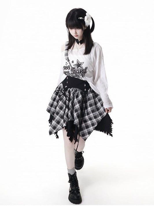 Side Asymmetrical Neckline Number and Letter Print Drawstring