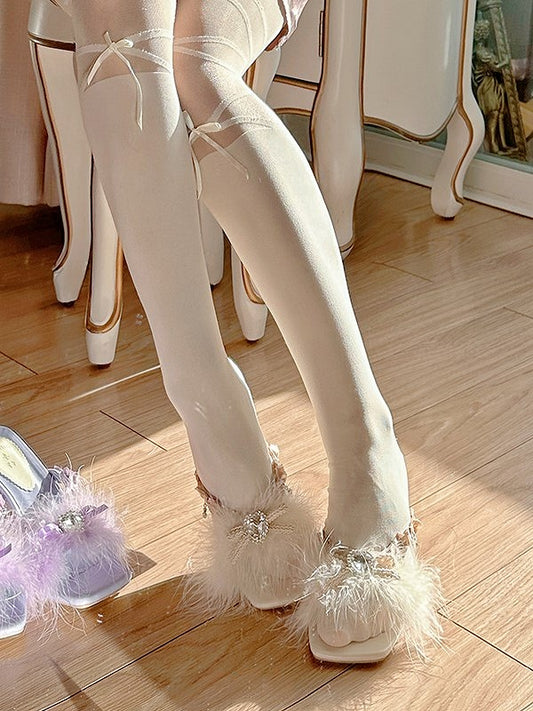 Accents Rhinestone Charm Sandals Sweet with Beige Plush Lolita