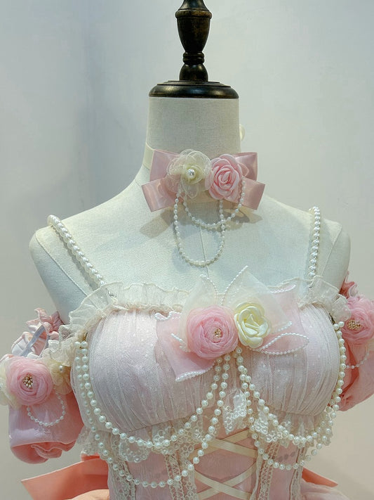 Decorated Pink Pendant Cake Beaded Necklace Bowknot