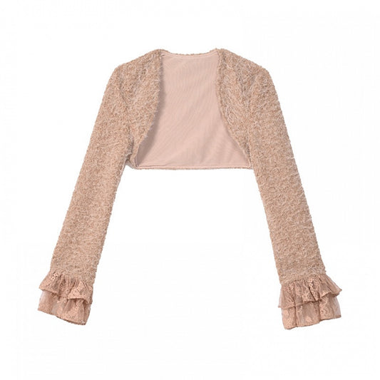 Spring Flounce Sleeves Top Lace Cuffs Camel Long Cropped
